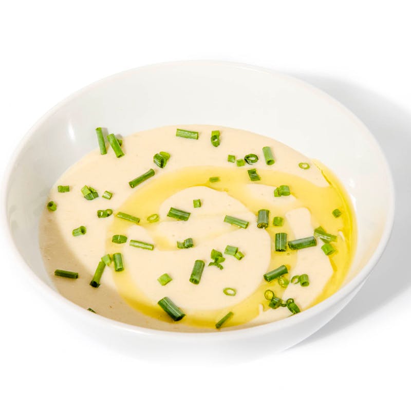 Potato, Leeks, Onion, Whole Milk, Heavy Cream, Garlic, Canola and Olive Oil Blend, Butter, White Wine Vinegar, Extra Virgin Olive Oil, Kosher Salt, Chives, White Pepper, Vegetable Base