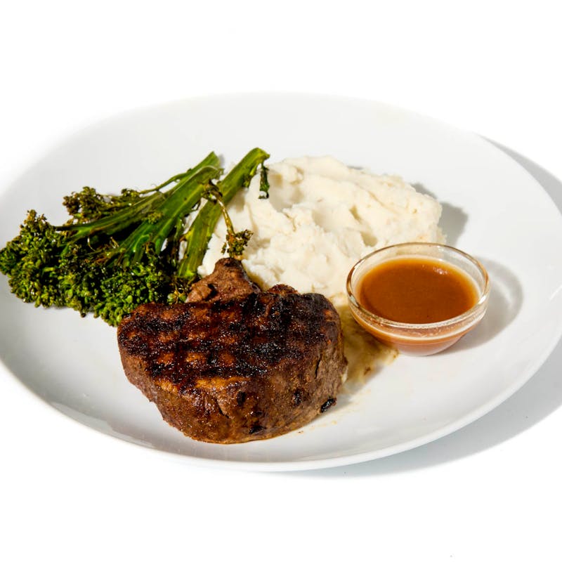 Tenderloin Steak, Yukon Potatoes, Broccolini, Veal Demi-Glace Base, Whole Milk, Butter, Heavy Cream, Red Wine, Porcini Mushroom Powder, Shallot, Extra Virgin Olive Oil, Garlic, Kosher Salt, Porcini Mushroom, Kosher Salt, Truffle Oil, Black Pepper, Garlic Powder, Onion Powder, Rosemary, Thyme, Granulated Garlic, Italian Parsley, Thyme, Crushed Red Pepper, Bay Leaf