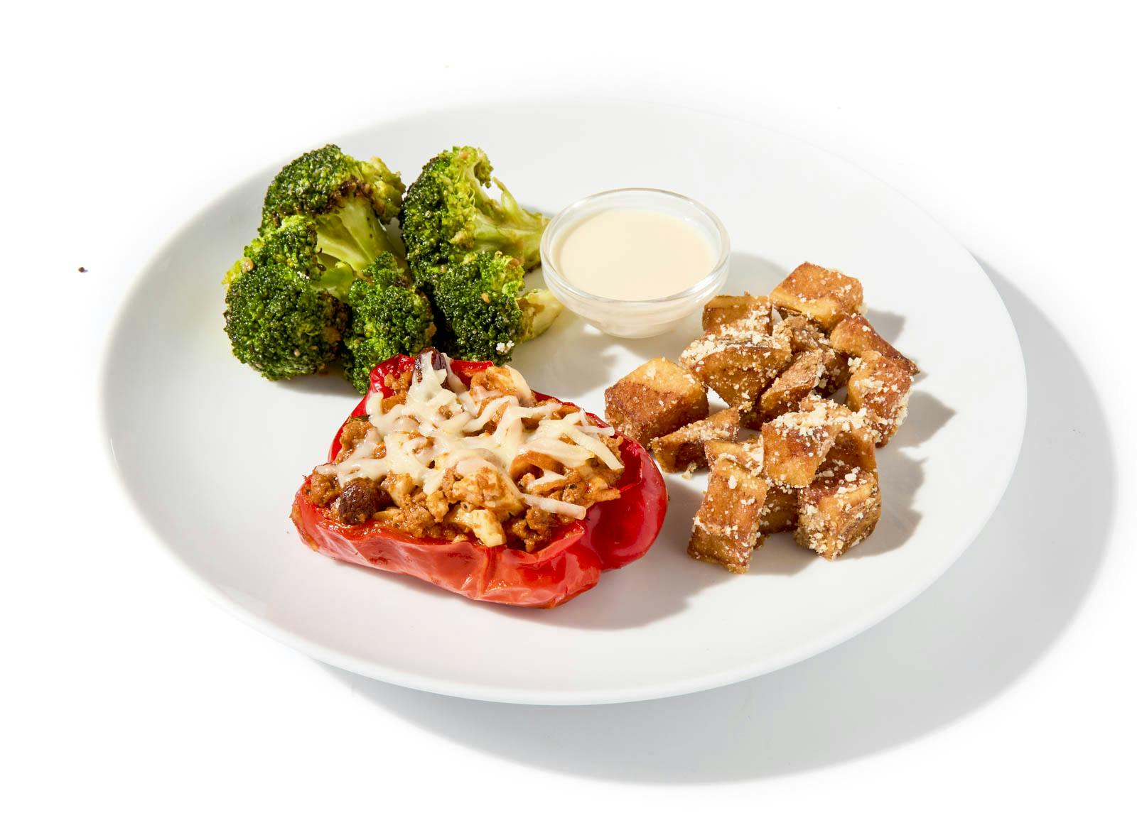 Pecorino Cheese, Mexican Oregano, Canola and Olive Oil Blend, Pork Chorizo, Butter, Red Mole Paste, Garlic Powder, Evaporated Milk, Black Pepper, Cilantro, Garlic, Canned Tomato, Onion, Red Wine, Kosher Salt, Green Peas, Carrots, Cabbage, Green Onion, Ground Beef, Green Bell Pepper, Panko Breadcrumbs, Italian Parsley