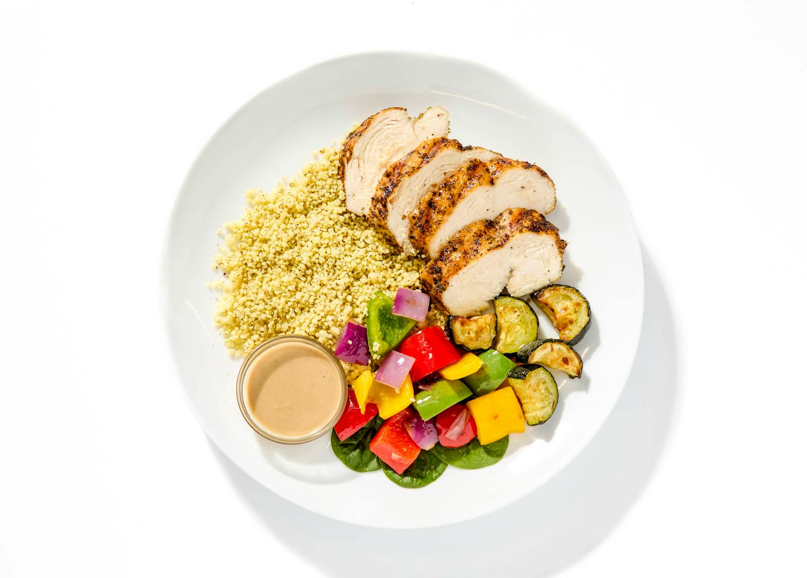 Introducing Chef Anne's special Herbed Tofu Chopped Salad—a vegan rendition of America's favorite chopped salad. Featuring Chef's signature marinated tofu, chickpeas and roasted red peppers on a bed of cabbage and arugula, the salad is topped with pickled shallots, vegan feta, and Marcona almonds. A tangy vegan ranch dressing is the perfect finishing touch. Bursting with flavor and wholesome nutrients, this salad is a plant-based feast for the senses.