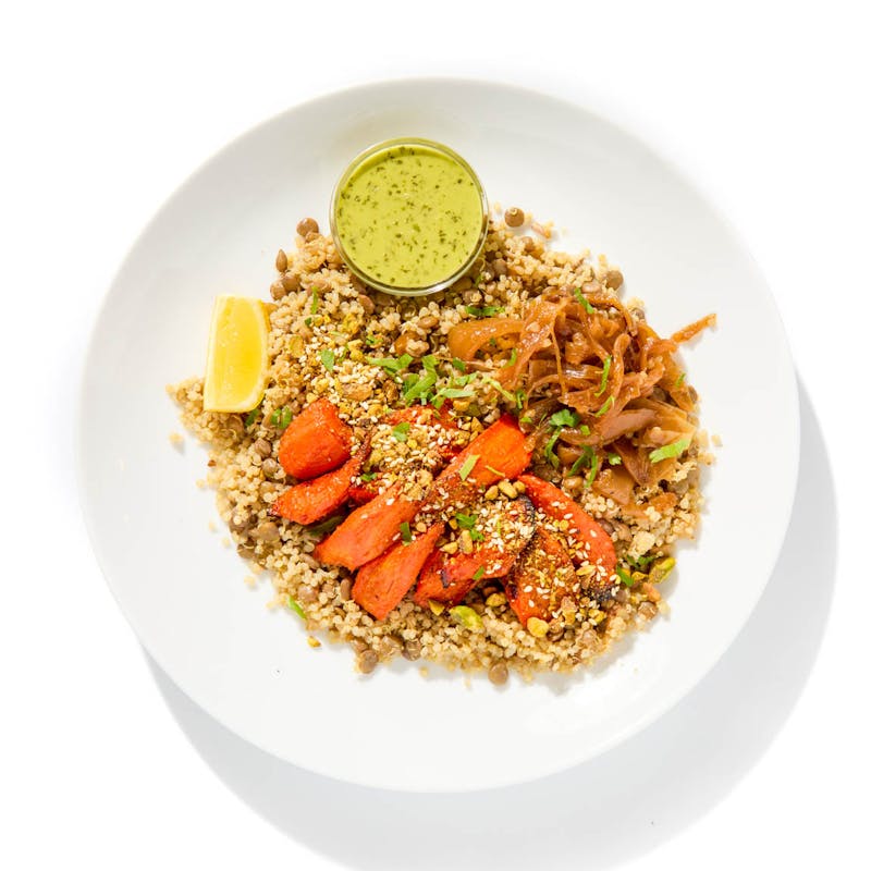 Coriander Seeds, Extra Virgin Olive Oil, Pistachios, Carrots, Himalayan Pink Salt, Cumin, Black Pepper, Cumin, Cilantro, Lemon, Garlic, Pomegranate Molasses, Lemon Zest, Onion, Kosher Salt, Jalapeno Peppers, Brown Lentils, Green Onion, Lemon Juice, Quinoa, Sesame Seeds