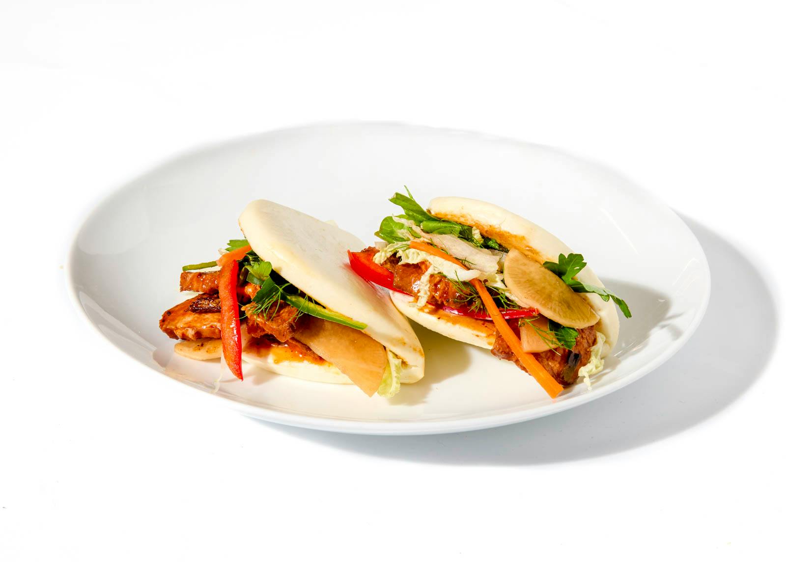 Thick, chewy udon noodles swirl through a luxuriously creamy sauce, made from butter and an umami-rich mix of white miso and gochujang. Slices of roasted pork tenderloin are sprinkled with Chef Chom’s piquant kimchi spice blend, then nestled on top and finished with a scatter of toasted sesame seeds and fresh scallions.