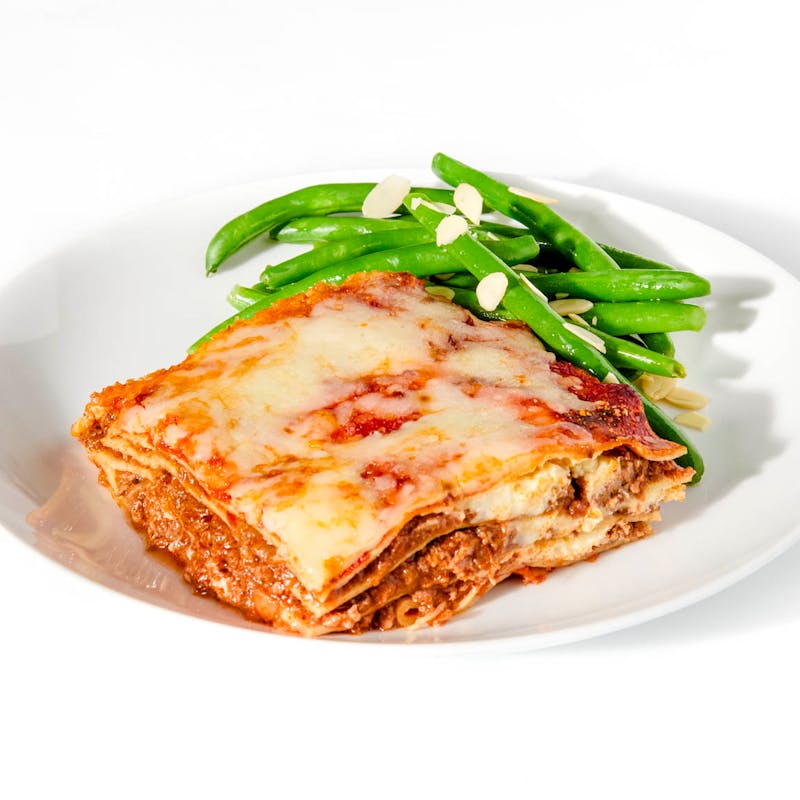 There's truly nothing more comforting than a hot, bubbling baked lasagna, and this one is made with homemade beef ragu, ricotta mix, silky fresh pasta, and topped with melted mozzarella cheese! This traditional Italian recipe is a staple of Chef Fabiola's, and is sure to be your new go-to comfort food. A side of green beans completes this warm, homestyle meal!