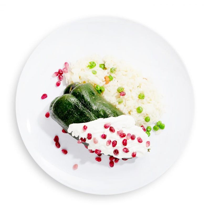 Mexican Independence Day is September 16th and is traditionally celebrated with this special dish. Poblano pepper is stuffed with a unique filling similar to picadillo that's made with ground beef and pork, plantains, raisins, apple, sliced almonds, and spices. The pepper is then topped with a walnut cream sauce and sprinkled with pomegranate seeds for a pop of color and flavor. This dish has all the colors of the Mexican flag and is emblematic of the country's pride!