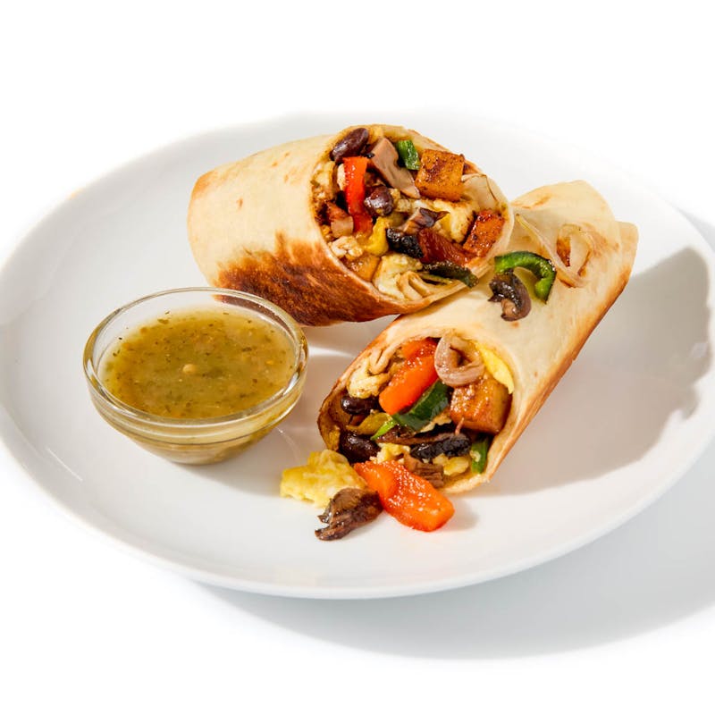 Inspired by Chef Maribel's San Antonio roots and Austin’s love for bold breakfasts, this burrito wraps fluffy eggs a la mexicana—cooked with rajas, tomatoes, and onions—with seasoned potatoes and melty cheese all together into pure Tex-Mex comfort.