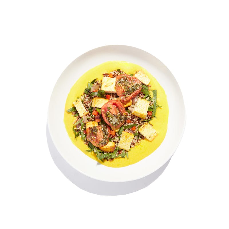 In this dish, Chef Maribel takes quinoa —a staple grain used in Peruvian cuisine—and treats it like rice to create a healthier version of risotto. Slow-roasted tomatoes add an acidic punch to pair with a delightfully creamy sauce using another stand-out ingredient from Peru: Aji Amarillo peppers. Baby spinach adds a pop of color and spiced tofu rounds out the dish to make it even more hearty and nutritious.