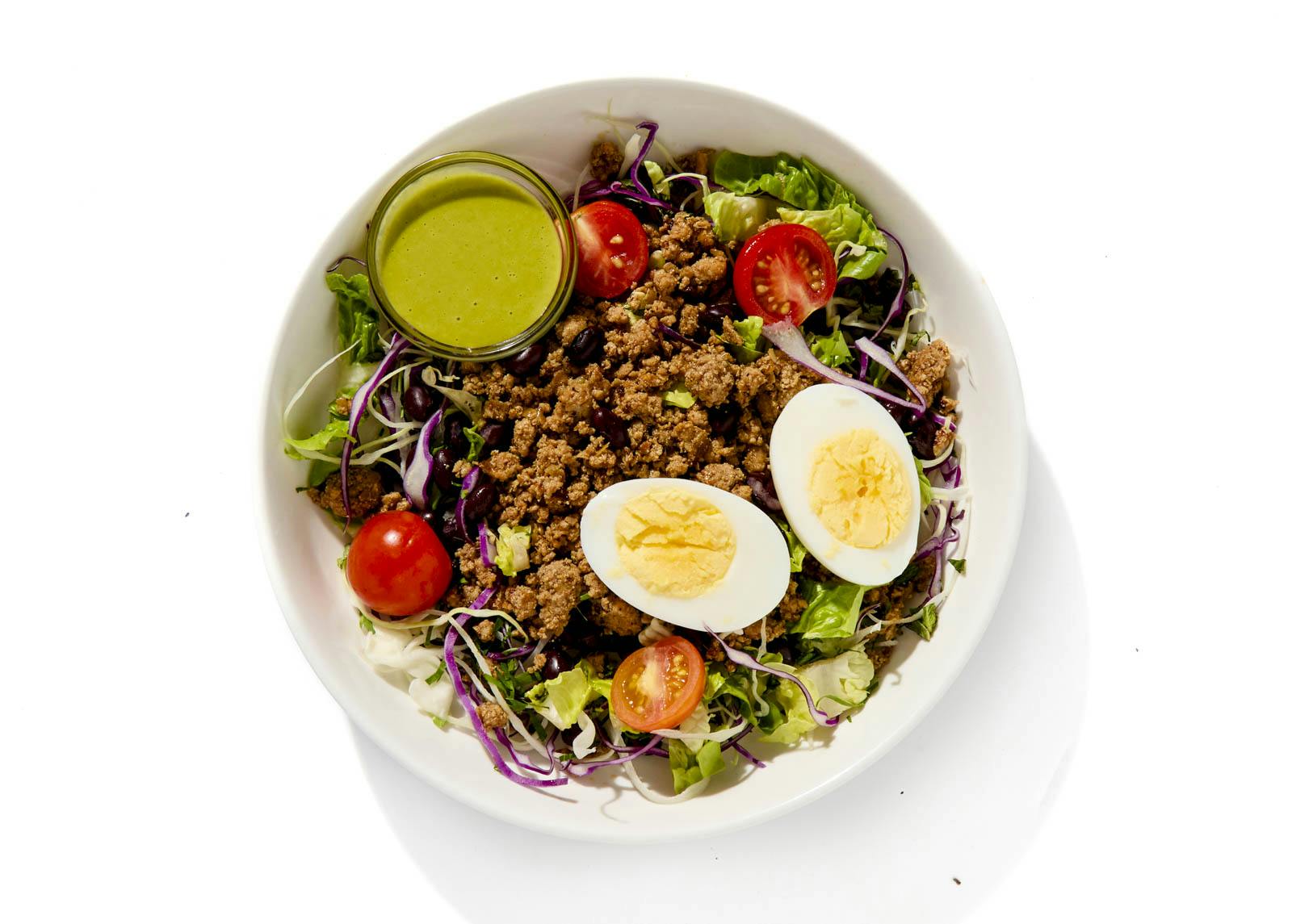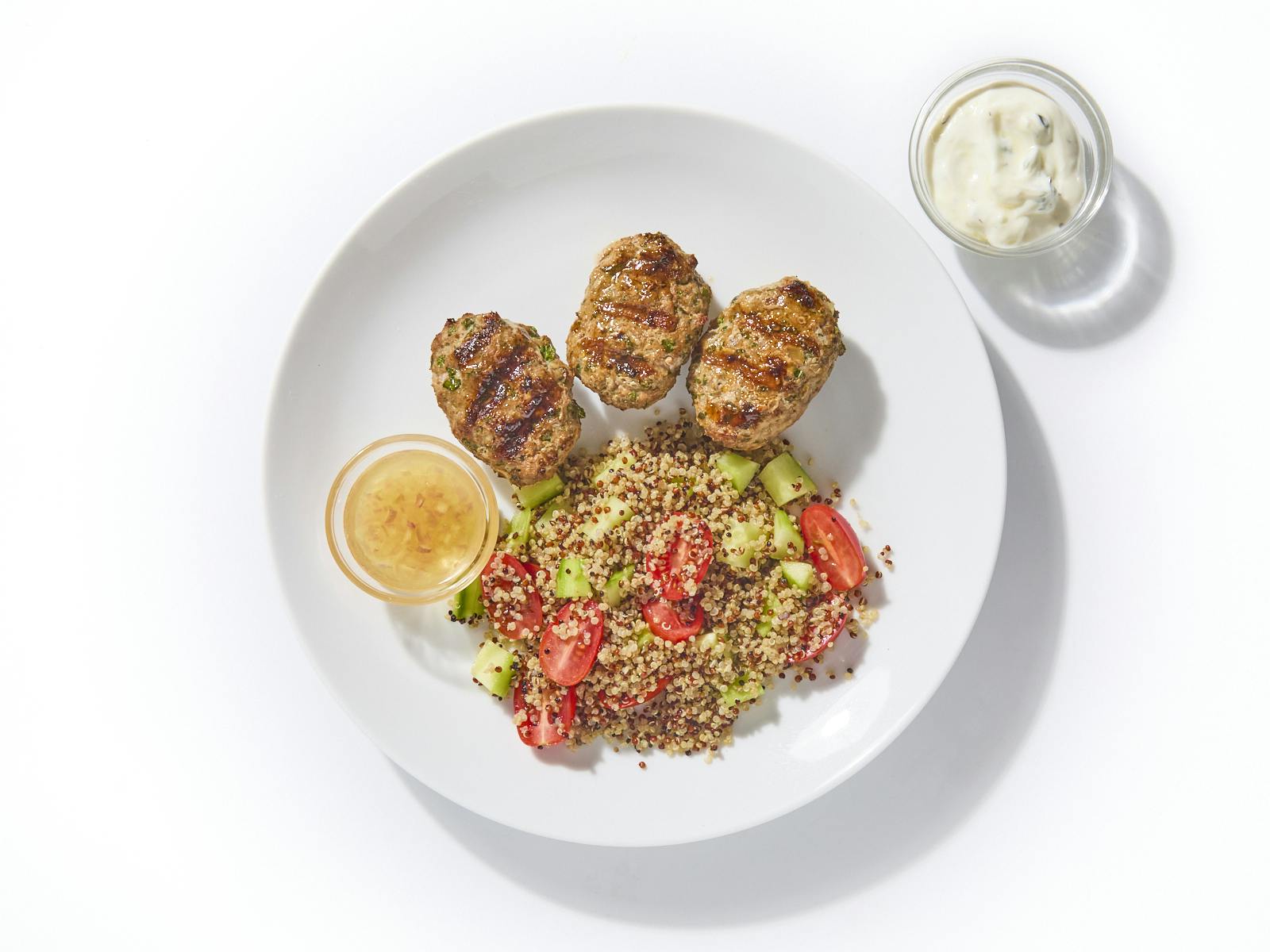 Chef Michael smothers these tender and delicately seasoned turkey meatballs in a rich and spicy tomato harissa sauce, delivering a delightful kick. A dollop of creamy yogurt sauce provides a cool contrast, while mint adds a burst of aromatic freshness. Fried onions lend a satisfying crunch, and warm pita bread rounds out this flavorful and well-balanced meal.