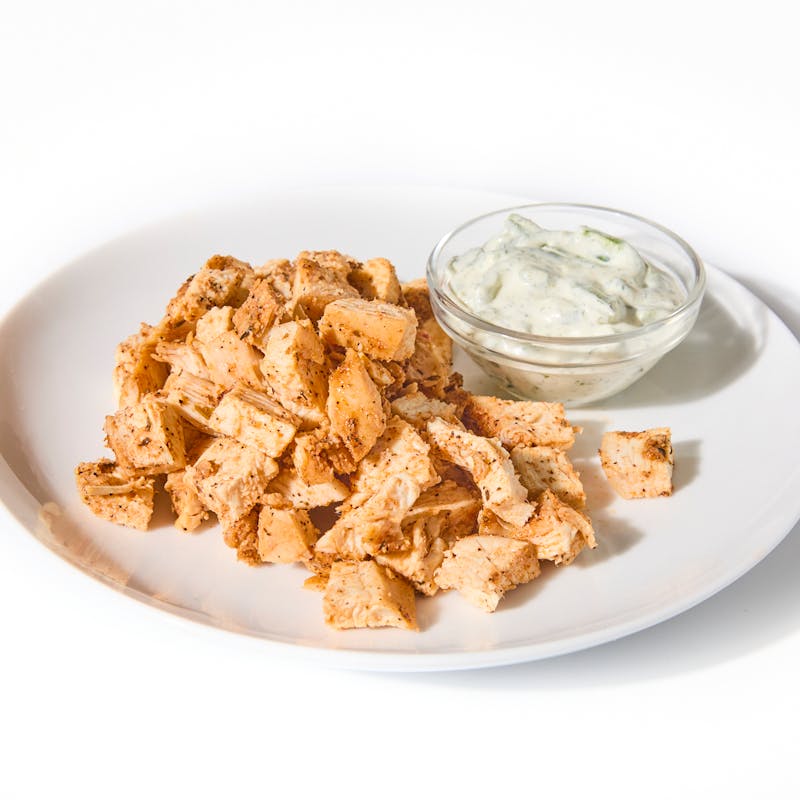 Lean but flavorful, this protein-packed snack brings juicy blackened chicken breast alongside a bold poblano ranch made with sour cream, lime, and roasted chili.