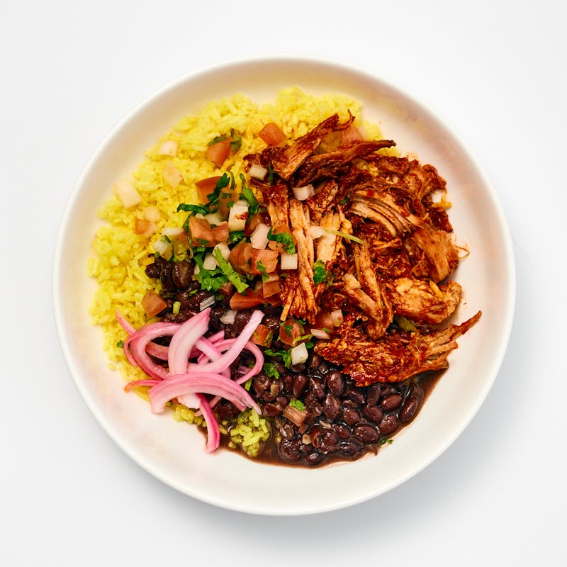Pork Shoulder, Jasmine Rice, Onion, Canned Black Beans, Plum Tomato, Red Onion, Rice Wine Vinegar, Lemon Juice, White Vinegar, Kosher Salt, Guajillo Chile, Cilantro, Garlic, Canola and Olive Oil Blend, Sugar, Carrots, Dried Morita Chile, Cinnamon Stick, Extra Virgin Olive Oil, Coriander, Turmeric, Bay Leaf, Chile de Arbol, Black Pepper, Star Anise, Cumin, Oregano