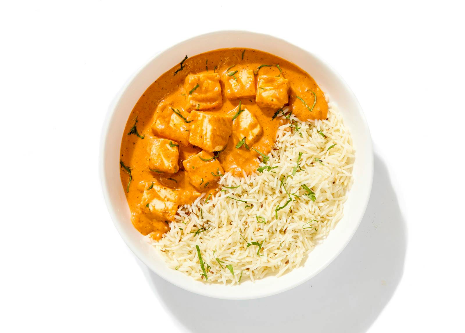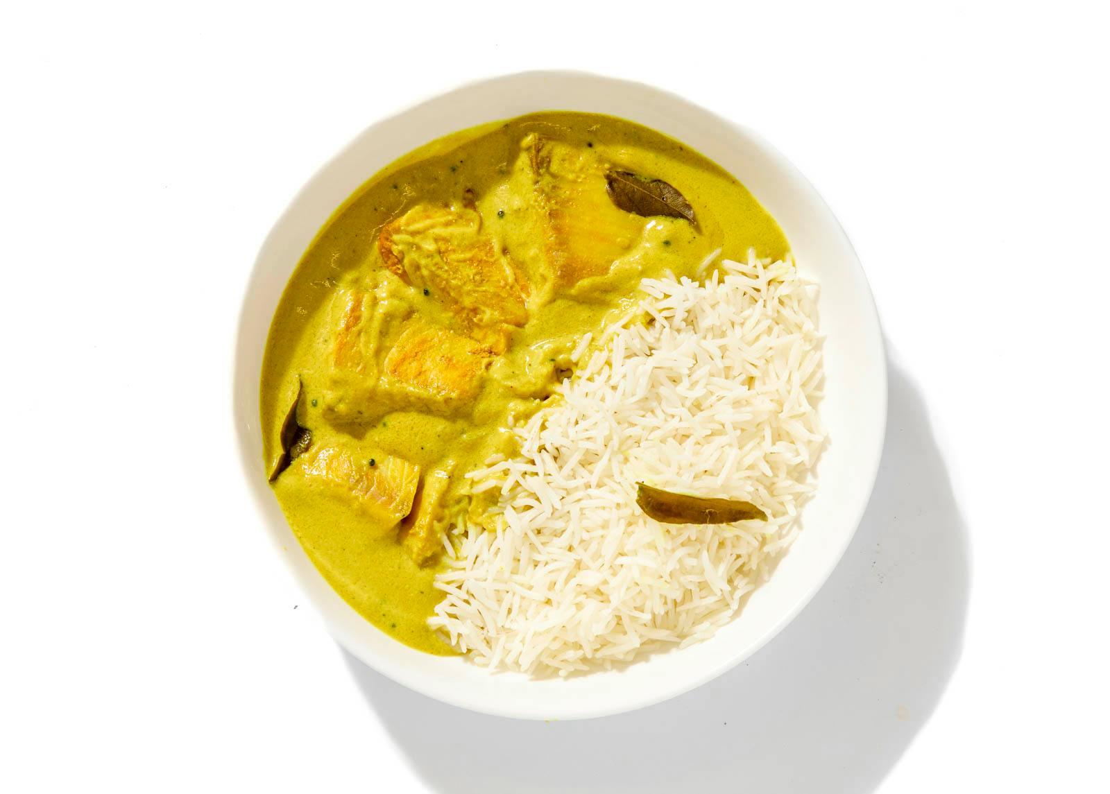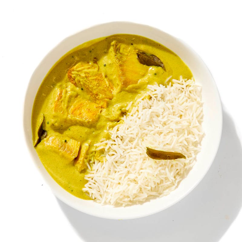 This is a delicate Kerala-style fish curry gently simmered in a fragrant coconut milk broth with curry leaves, ginger, and green chilies. Lightly spiced and beautifully balanced, this creamy coastal classic highlights the natural sweetness of fresh fish. Served with steamed basmati rice.