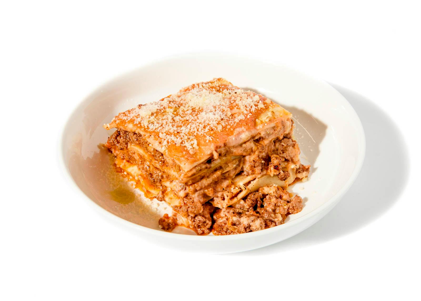 Tomato Sauce, Lasagna Sheets, White Wine, Beef Wagyu, Ground Pork, Parmesan Cheese, Whole Milk, Ground Veal, Red Onion, Celery, Carrots, Basil, Tomato Paste, Extra Virgin Olive Oil, Kosher Salt, Nutmeg, Black Pepper, Chicken Base, Cumin