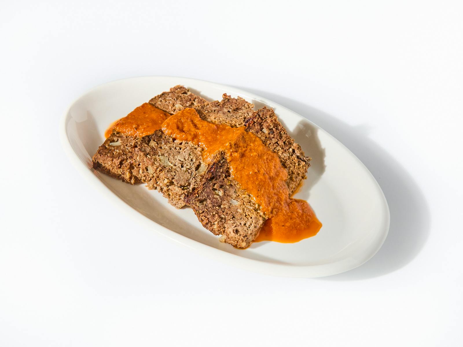 This ground beef meatloaf comes infused with Mexican spices, fresh cilantro, and a hint of chipotle. Served with a smoky chipotle sauce for depth and heat.