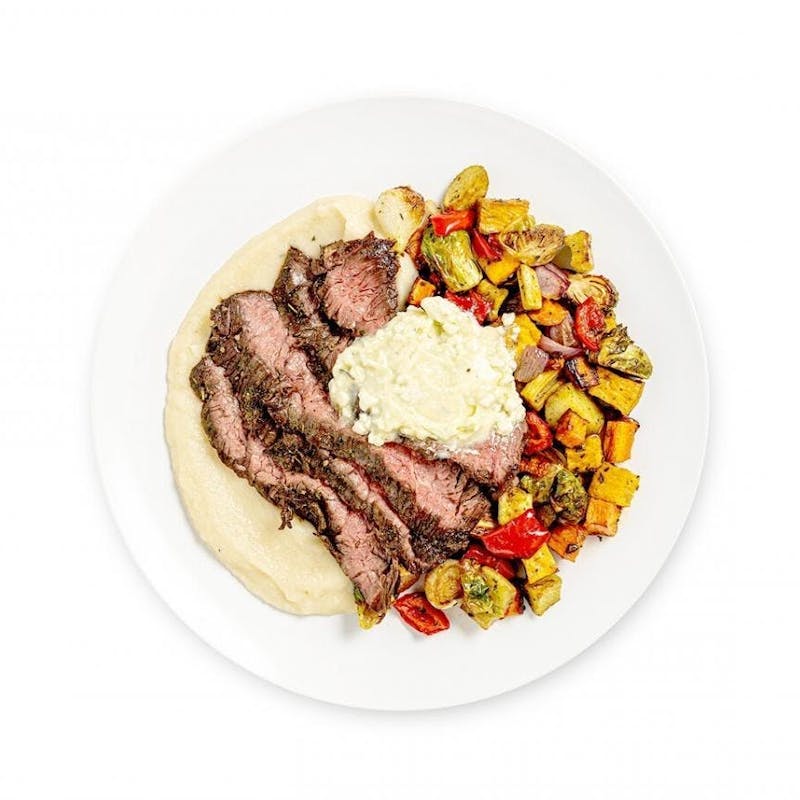 Grilled Grass Fed Skirt Steak & Celery Root Mash