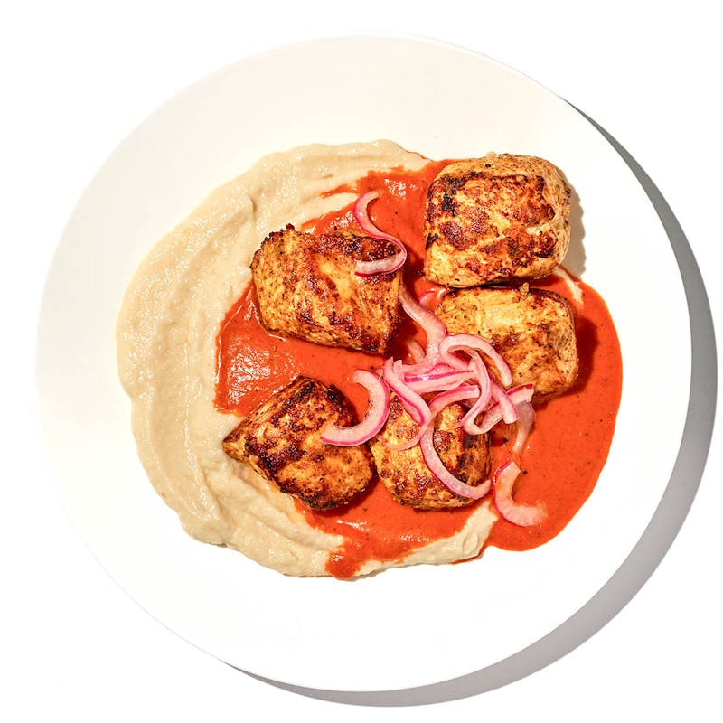 Chef Aarthi puts a spin on this beloved Indian-cuisine staple. The tender, juicy chicken breast and velvety smooth tomato sauce are fragrant with traditional spices. Pickled shallots give a pop of flavor and texture. And trading rice for a savory Cauliflower Mash keeps the carbs down without any compromise to flavor. “This dish is one of my favorites,” chef says. It’ll be one of yours, too.