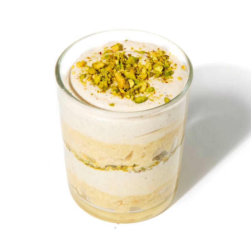 Cooking Spray, Sugar, Powdered, 10X, Condensed Milk, All Purpose Flour, Pistachios, Avocado Oil, Baking Soda, Evaporated Milk, Baking Powder, Cardamom, Egg, Sugar, Heavy Cream, Kosher Salt, Saffron, Greek Yogurt