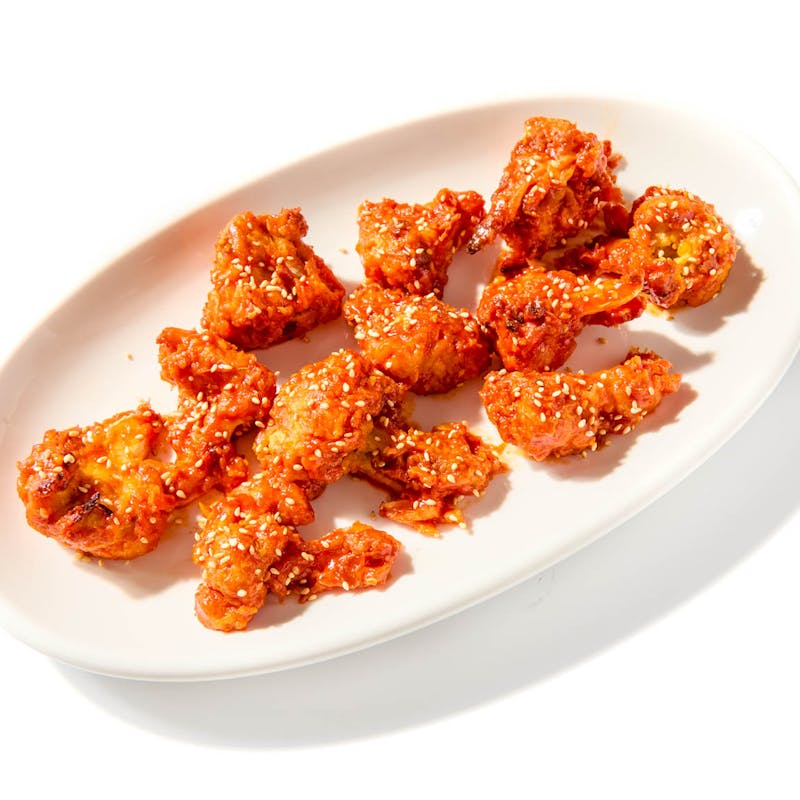 Coriander Seeds, Chickpea Flour, Turmeric, Cumin, Avocado Oil, Garlic Powder, Tomato Paste, Cilantro, Rice Flour, Garlic, Corn Starch, Sugar, Kosher Salt, Espelette Pepper , Apple Cider Vinegar, Ketchup, Ginger, Canola Oil, Cauliflower, Sesame Seeds