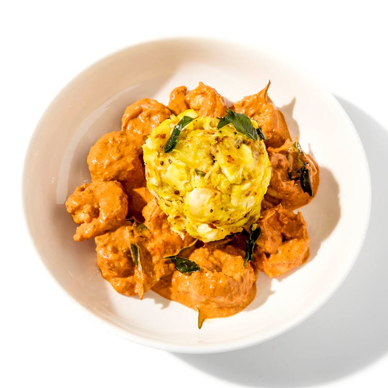 This Kerala-style duo brings together two deeply comforting elements: kappa, a spiced cassava mash rich with coconut, turmeric, and curry leaves, and a vibrant shrimp curry rich with coconut milk, fennel, and garam masala. Every spoonful has the earthy heat of the South Indian coast, mellowed by the buttery texture of the cassava and warmth of sautéed shallots.