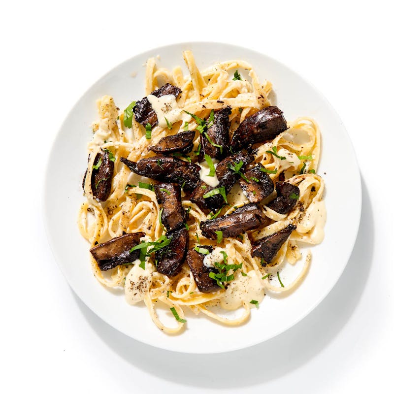 Canola and Olive Oil Blend, Butter, Fettuccini, Garlic, Portabello Mushrooms, Heavy Cream, Kosher Salt, Shallot, Black Pepper, Truffle Oil, Italian Parsley, Parmesan Cheese