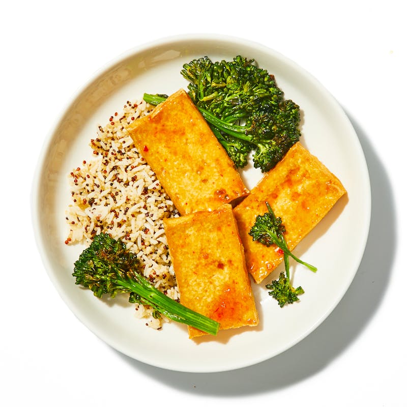 Sauce, Tamarind Sweet Chili, Hong Thaimee, Canola and Olive Oil Blend, Garlic, Jasmine Rice, Kosher Salt, Tofu, Tri-color Quinoa, Broccolini
