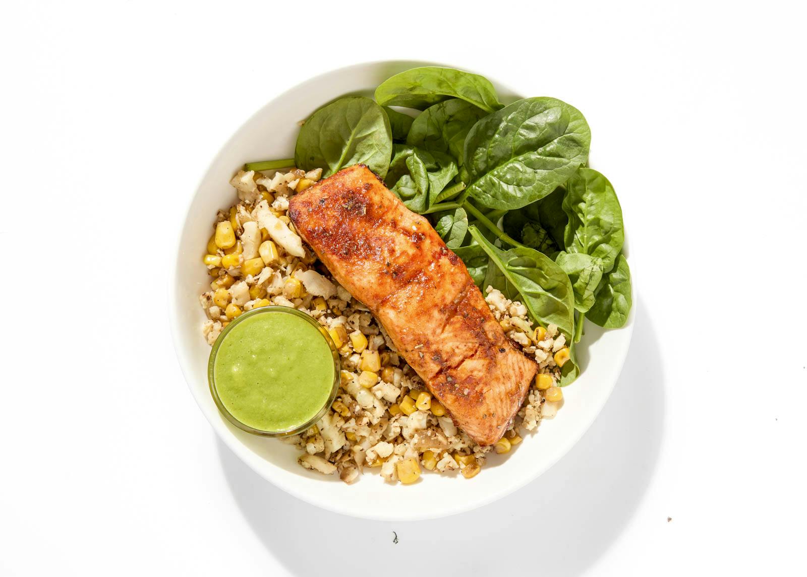Canola and Olive Oil Blend, Black Pepper, Garlic, Kalamata Olives, Agave Syrup, Corn Starch, Orzo, Kosher Salt, Liquid Smoke, Orange Juice, Green Bell Pepper, Crushed Red Pepper, Basil, Salmon, Red Bell Pepper, Parmesan Cheese