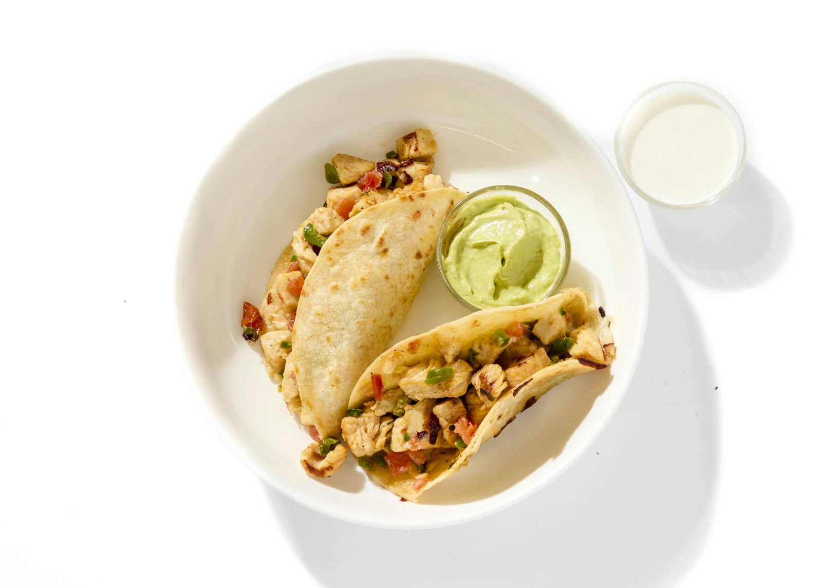 These fresh tacos are made with short rib, plenty of veggies, and a tomatillo chipotle sauce you will love until the last drop.