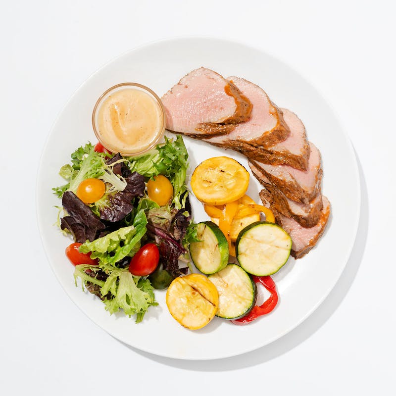 Browning and seasoning sauce, Orange Bell Pepper, Raw Honey, Guava Puree, Jerk Seasoning, Creole Seasoning, Tropical Juice, Mixed Greens, Habanero Peppers, Brown Sugar, Extra Virgin Olive Oil, Carrots, Whole Grain Mustard, Cajun Spice, Cherry Tomato, All Purpose Seasoning, Garlic, Dijon Mustard, Corn Starch, Zucchini, Onion, Red Wine, Kosher Salt, Yellow Squash, Light Brown Sugar, Grapeseed Oil, Rice Wine Vinegar, Ketchup, Thyme, Pineapple Juice, Green Onion, Pork Tenderloin, Lemon Juice, Ginger, Red Bell Pepper, Cayenne Powder, Italian Parsley, Soy Sauce, Italian Herb Seasoning