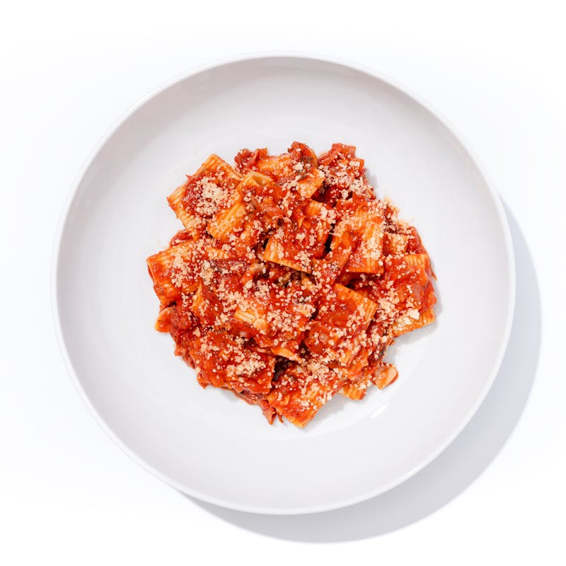 Chef Jérémie presents a bold and comforting rigatoni with pancetta, tomato, and pecorino—a tribute to Roman classics with his signature punch. Garnished with fresh grated parmesan.