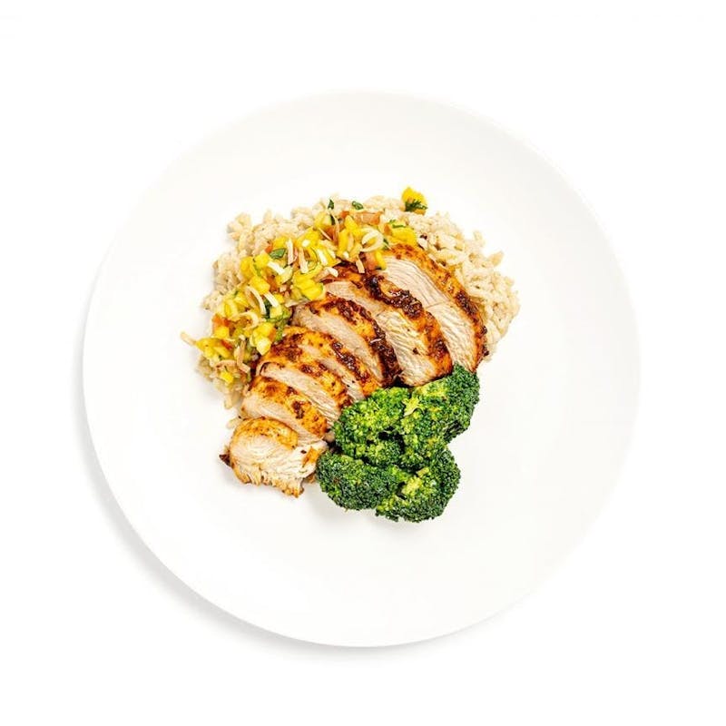 Mango, Canola and Olive Oil Blend, Habanero Peppers, Butter, Plum Tomato, Broccoli , Cilantro, Honey, Clam Juice, Coconut Flakes, Agave Syrup, Onion, Basmati Rice, Kosher Salt, Coconut Milk, Lime Juice, Blackened Seasoning, Green Onion, Ginger, Chicken Breast