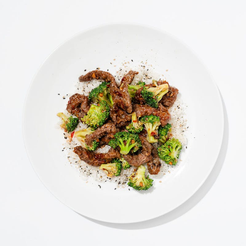 Sesame Oil, Flank Steak, Canola and Olive Oil Blend, Broccoli , Garlic, Nori, Corn Starch, Light Soy Sauce, Jasmine Rice, Black Sesame Seeds, Red Sambal Chili Paste, Light Brown Sugar, Rice Wine Vinegar, Ginger, Toasted Sesame Seeds