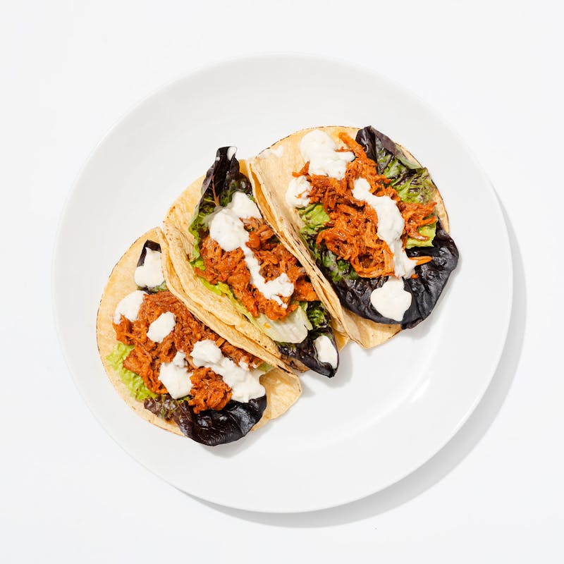 Korean BBQ meets Mexican street food with Chef Kate's gochujang-braised carnitas. They're served with corn tortillas, crisp lettuce, and a green onion sour cream. Sweet, smoky, and just the right amount of spicy!