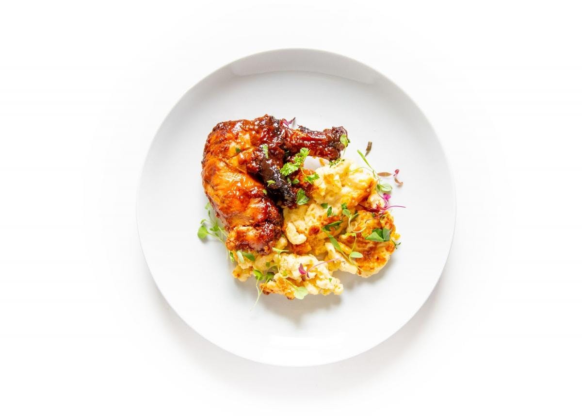 Oh man, do we love saucy BBQ chicken and ooey, gooey cheesy mac. Besides the obvious, we think what we love most about this meal is the subtle heat to the sweet smoky BBQ sauce. Oh, and did we mention the ooey gooey creamy mac and cheese?! The mac is finished with a Pepper Jack-Cheddar cheese crumb crust that just takes it over the top. This meal presents a delicious dilemma: what’s better, the side or the protein? Luckily you don’t have to choose! Chef Chris highly recommends heating this meal in the microwave