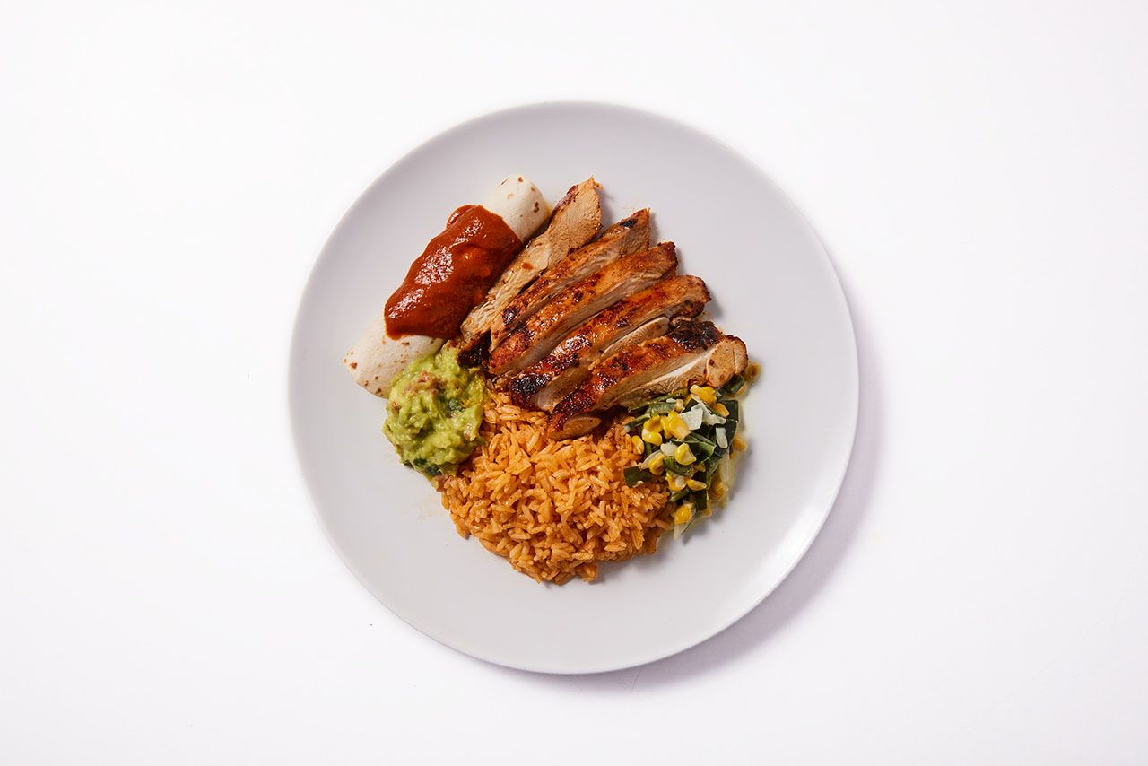 La Tampiqueña is one of the most quintessential dishes in Tamaulipas, and Mexican cuisine in general. Chef Santiago put his own delicious spin on the dish with perfectly grilled chicken that's been marinated with typical Mexican seasonings, chiles, and achiote. The chicken is served alongside a decadent cheese enchilada along with sides of smoky chipotle-infused rice, rajas (creamy, cheesy sautéed corn and poblano peppers), and fresh, tangy guacamole. This is without a doubt one of Santiago's favorite dishes he's prepared for CookUnity (and ours too!)