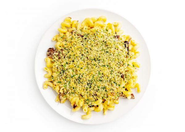 Enjoy your childhood comfort food, but kicked up a few notches. Chef Jose's signature macaroni and cheese is totally irresistible with al dente cavatappi pasta and a decadent four-cheese sauce. Adding braised beef makes the dish a bit heartier and more balanced. To take it over the top, Chef tops it with a buttery Panko breadcrumb topping infused with fresh herbs, plus some Gruyere and Parmesan cheeses for extra nuttiness, then bakes the entire dish. This is a guaranteed crowd-pleaser that will have everyone fighting over the last bite!